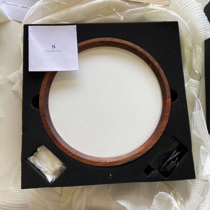 The decisive part was to turn them on. Sandsara is intended that once it arrives at you, just pour the sand, place the metal ball in the center, and plugin it to start their captive paths. And the units worked as expected. After plugin it, the LEDs will turn on for the devices with the Aura upgrade. Then the magnet arm will start its calibration process, which will take around 30 secs. After this, your Sandsara will begin making the paths. I will post more detailed instructions once we finish the logistic stage, and of course, each Sandsara will come with its written instructions.