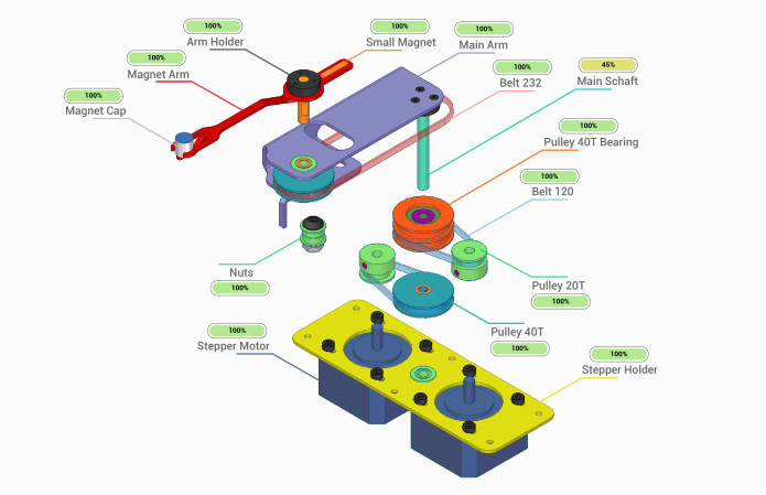 In this first batch, we published drawings and 3d models of the full mechanism. As you can recall, SANDSARA is based on a SCARA mechanism, which allows us to reach the edges of the sandbed.